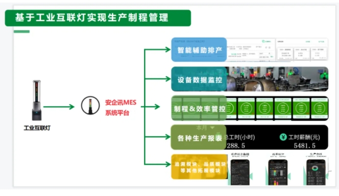 1. 安企訊MES通過安裝智能三色燈實現(xiàn)機聯(lián)網(wǎng),安裝即聯(lián)網(wǎng)。從而實現(xiàn)了聯(lián)網(wǎng)易。lightMES智能三色燈的硬件是通過特殊設(shè)計,擁有通信模塊,裝入物聯(lián)網(wǎng)卡即可輕松實現(xiàn)設(shè)備聯(lián)網(wǎng)。三色燈是生產(chǎn)設(shè)備的標(biāo)配,我們在傳統(tǒng)三色燈上加上采數(shù)盒子,采集三色燈的燈色,時長和加工次數(shù)普通三色燈就變成智能三色燈,和交通燈一樣,紅燈停(設(shè)備停止),黃燈等(設(shè)備等待),綠燈行(設(shè)備運行),具有普適性,適用于100%的生產(chǎn)設(shè)備,所有產(chǎn)線與所有工位即插即用。(易聯(lián)網(wǎng))